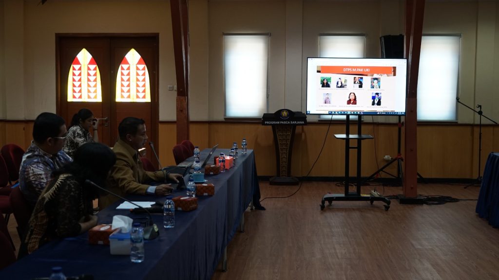Acara Bench Marking antara Prodi Magister Pendidikan Agama Kristen STT Moriah ke PPS MPAK UKI dimulai dengan doa dan perkenalan anggota tim prodi.