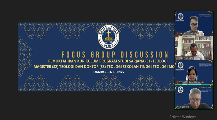 Sebagai bagian dari komitmen untuk terus meningkatkan kualitas pendidikan teologi yang kontekstual, unggul, dan relevan dengan kebutuhan zaman, Sekolah Tinggi Teologi (STT) Moriah menyelenggarakan Focus Group Discussion (FGD) Pemutakhiran Kurikulum untuk Program Studi S1, S2, dan S3 Teologi pada hari Rabu, 2 Juli 2025 yang diadakan online via ZOOM Meeting.