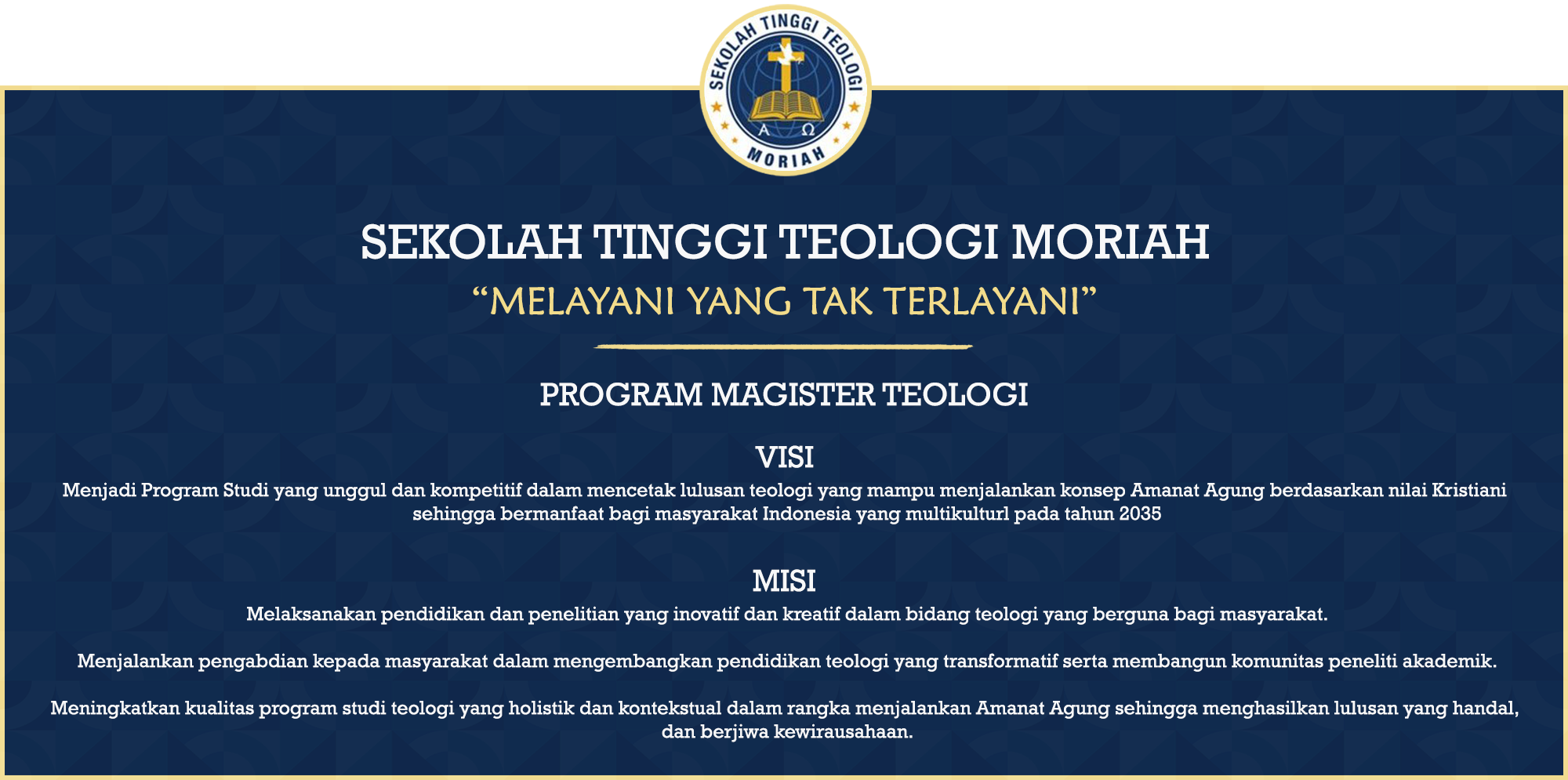 1. Menghasilkan lulusan yang mampu mengembangkan teologi yang integratif dan relevan dalam konteks Indonesia yang multikultural.